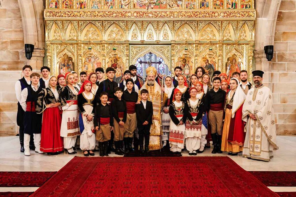 Την Κυριακή τελέστηκε Θεία Λειτουργία στον Καθεδρικό Ναό Ευαγγελισμού της Θεοτόκου, όπου ο Σεβασμιώτατος Αρχιεπίσκοπος Μακάριος αναφέρθηκε στους βαθιούς πνευματικούς και πολιτιστικούς δεσμούς της κοινότητας και ευλόγησε το 2026 ως έτος ευλογημένο και δημιουργικό. Ακολούθησε πρωινό κέρασμα που παρατέθηκε γενναιόδωρα από τον Σεβασμιώτατο. Νέοι από όλη την Αυστραλία και τη Νέα Ζηλανδία παρουσίασαν συρτό και, κατόπιν επιθυμίας του Σεβασμιωτάτου, πεντοζάλη. Σε κάθε χορευτή προσφέρθηκε αναμνηστικό δώρο, ενώ στον Σεβασμιώτατο απονεμήθηκε τιμητική πλακέτα από τον κ. Εμμανουήλ Μουντάκη, Πρόεδρο της Κρητικής Ομοσπονδίας.