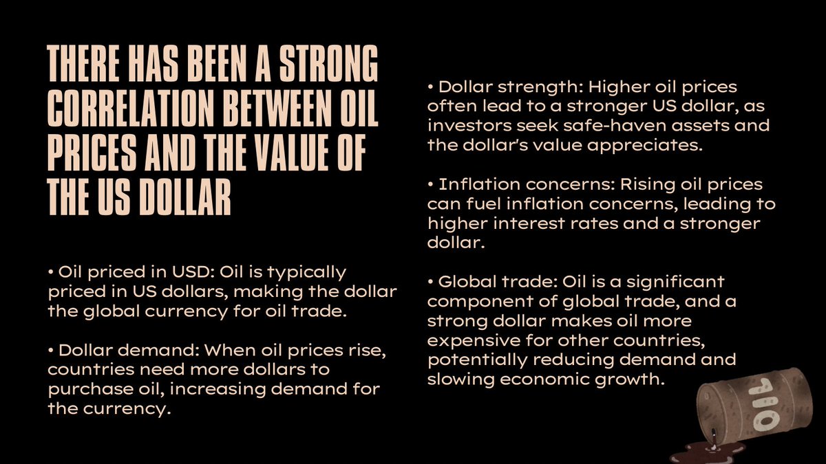 4. You see, the value of US dollar is linked to the value of oil. This means when oil prices rise, countries need more dollars to purchase oil, increasing demand for the currency.