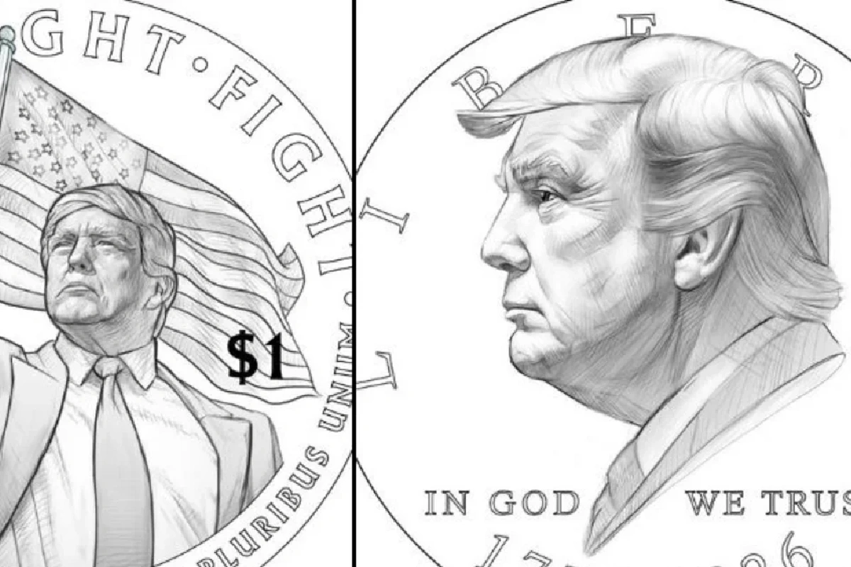 According to draft designs posted on the social media platform X and later reshared by the Treasury Department, the one-dollar coin could feature Trump’s profile alongside the inscription “LIBERTY” in capital letters. On the reverse side, he is depicted with his fist raised before an American flag, accompanied by the phrase “Fight, fight, fight.”